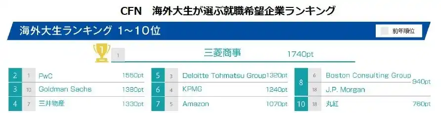 | ・CFN 海外大生が選ぶ就職人気企業ランキング | |||