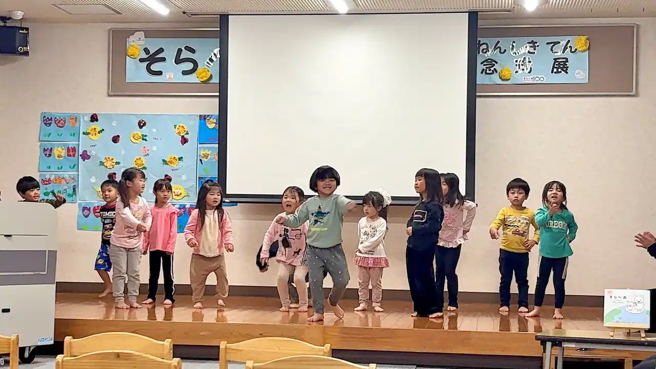 その後、記念プレートや紙芝居、絵本の贈呈が行われ、園児たちからは歌の披露もあり、会場は温かな雰囲気に包まれました。 |