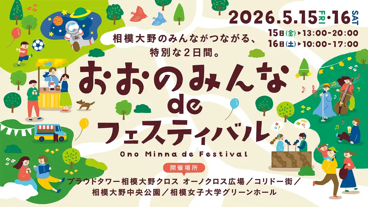 相模大野駅周辺エリアマネジメント(通称:おのみん)は、2026年5月15日(金)・16日(土)の2日間、相模大野駅周辺一帯にて「おおのみんな de フェスティバル」を開催いたします。 |