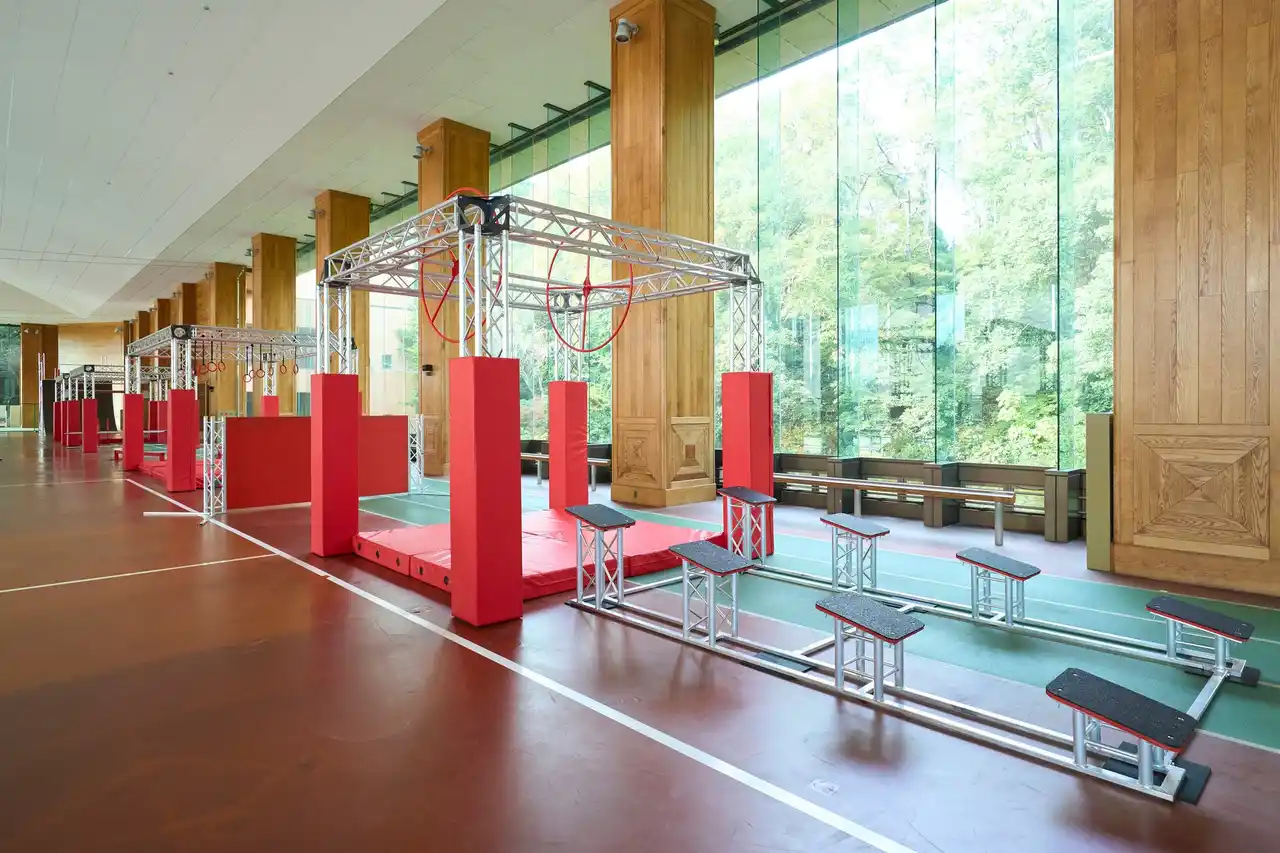 2025年1月には、近代五種の新競技に採用され注目を集める「オブスタクル」近代五種コースを国内で初めて新設。70mのコースに、「モンキーバー(うんてい)」や、高さ3.5メートルの反り返った壁「フィニッシュウォール」な8種の障害物全てを備えたコースは、11月に開催された全日本選手権でも実際に使用した現物の「オブスタクル」となっており、ご宿泊のお客様や企業研修などでもご利用です。 |