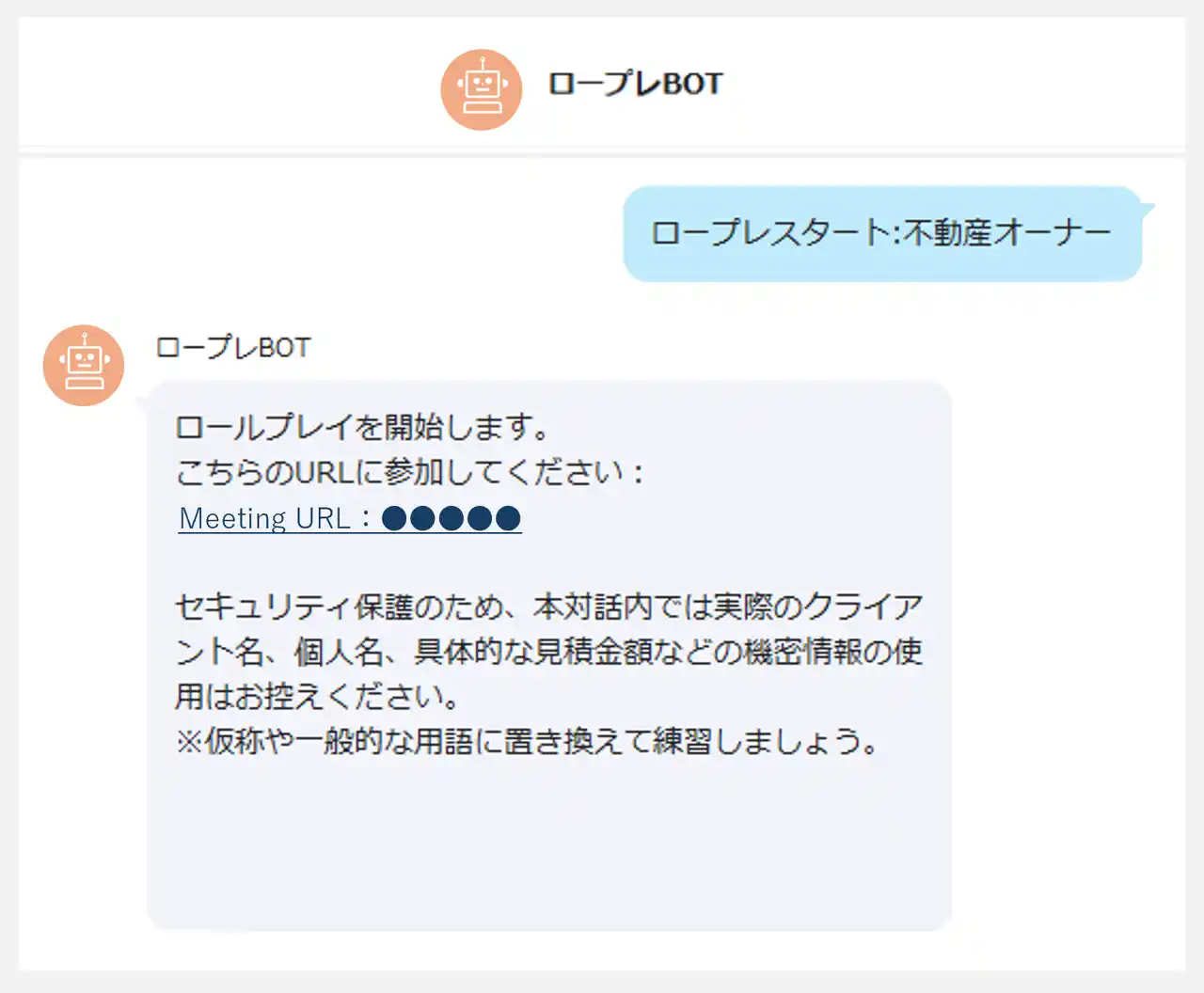 当社の実際の事業内容に最適化された相手役(ペルソナ)を複数用意しており、運用を通じた継続的な改善・アップデートが可能です。チャット上でペルソナを選択し、発行されたオンラインMTGのURLから参加するだけで、AIとのリアルタイムな音声対話が行えます。 |