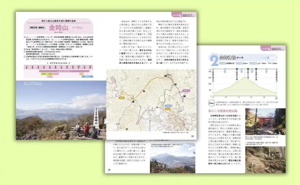 各山の基本情報、歩行時間や距離、コースのアップダウンがわかるグラフのほか、グルメや温泉など立ち寄り情報も収録しています。さらに、海の絶景、花・植物の絶景といったテーマ別のおすすめコースも紹介しました。 |