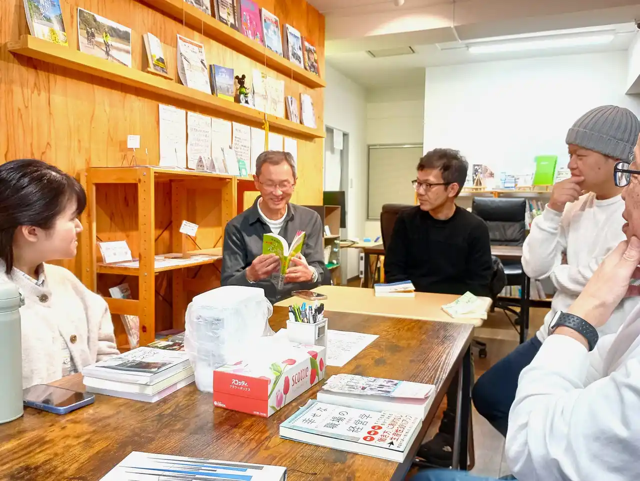 「つむぐ文庫(つむぶん)」館内(読書会の様子) |