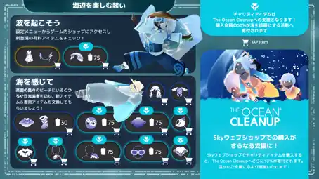 また、ゲーム内では今年も海を守る活動への支援に繋がる特別なアイテムをご用意しています。 |