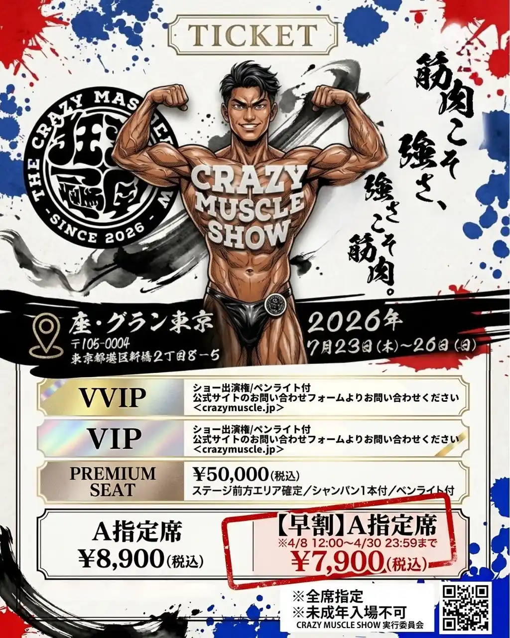 また、2026年4月8日(水)12時より、公式サイト(crazymuscle.jp)を公開し、併せて「チケット早割最速先行(チムチケ限定)」の販売を開始いたしました。 |