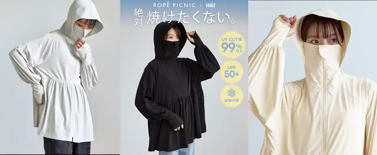 ファッションの力で日常を豊かにするライフスタイル創造カンパニーのクロスプラス株式会社(本社:愛知県名古屋市、代表取締役社長:山本 大寛)は、株式会社ジュン(本社:東京都港区、代表取締役社長:佐々木進、以下「ジュン」)が運営する、「ROPE PICNIC(ロペピクニック)」と、機能性ファッションブランド「Yoki(ヨキ)」による「“絶対焼けたくない”日焼け対策シリーズ」とのコラボレーションアイテムを、「ROPE PICNIC」全店舗およびジュン公式オンラインショッピングストア「J'aDoRe JUN ONLINE(ジャドール ジュン オンライン)」にて販売開始いたしました。 |