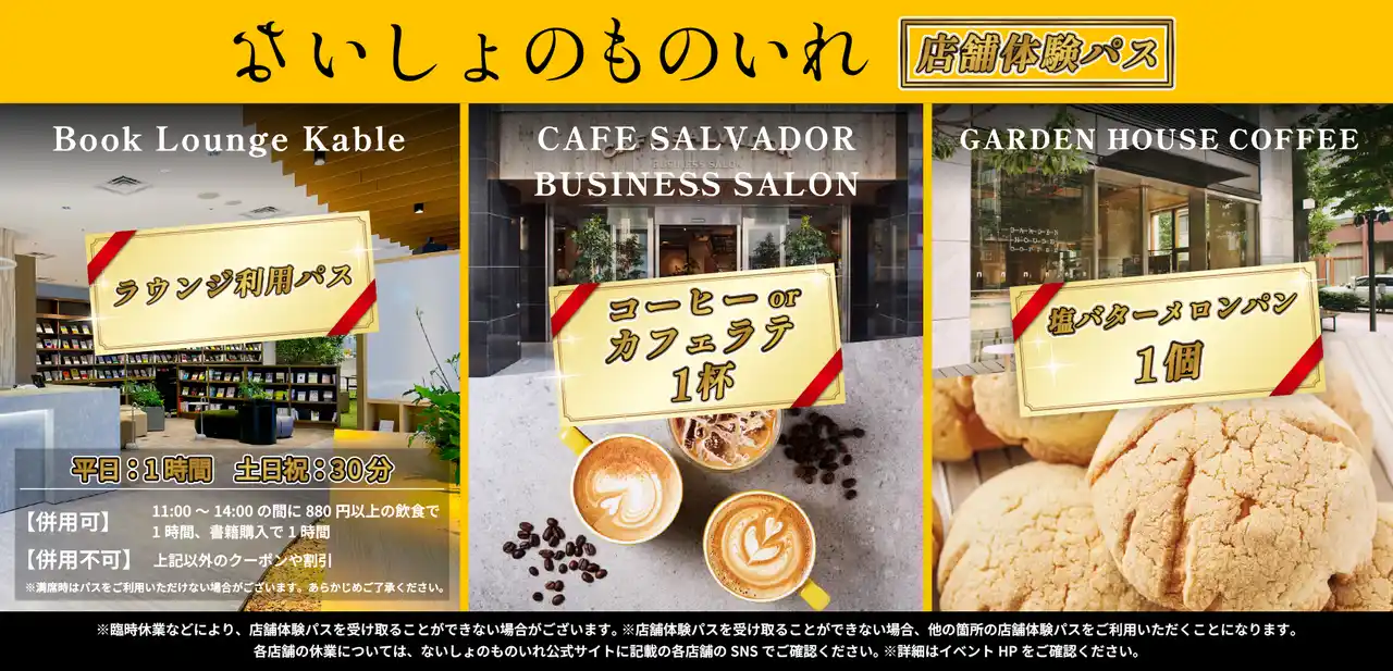 また、指定店舗ごとに異なる店舗体験パスを用意しております。 |