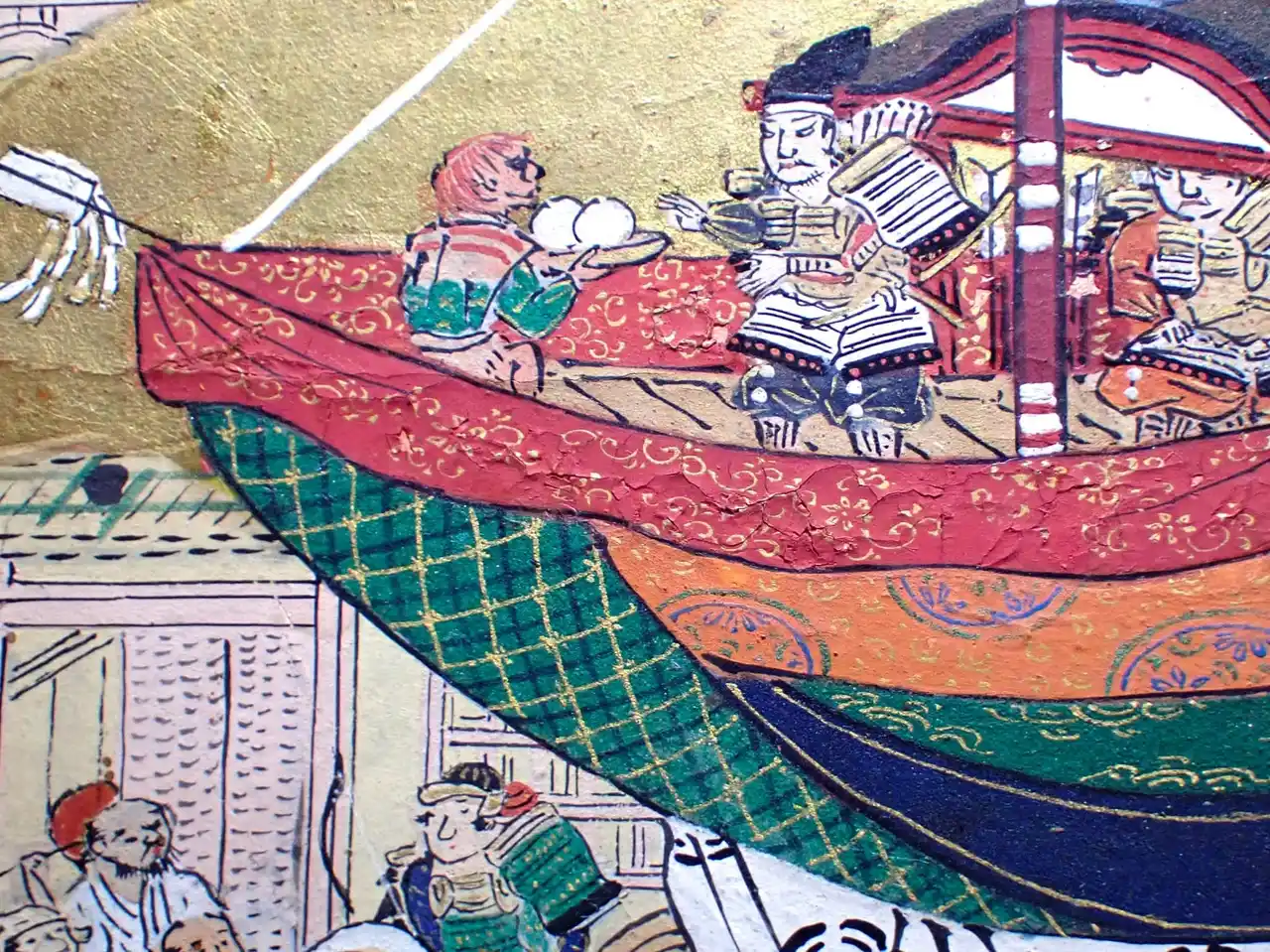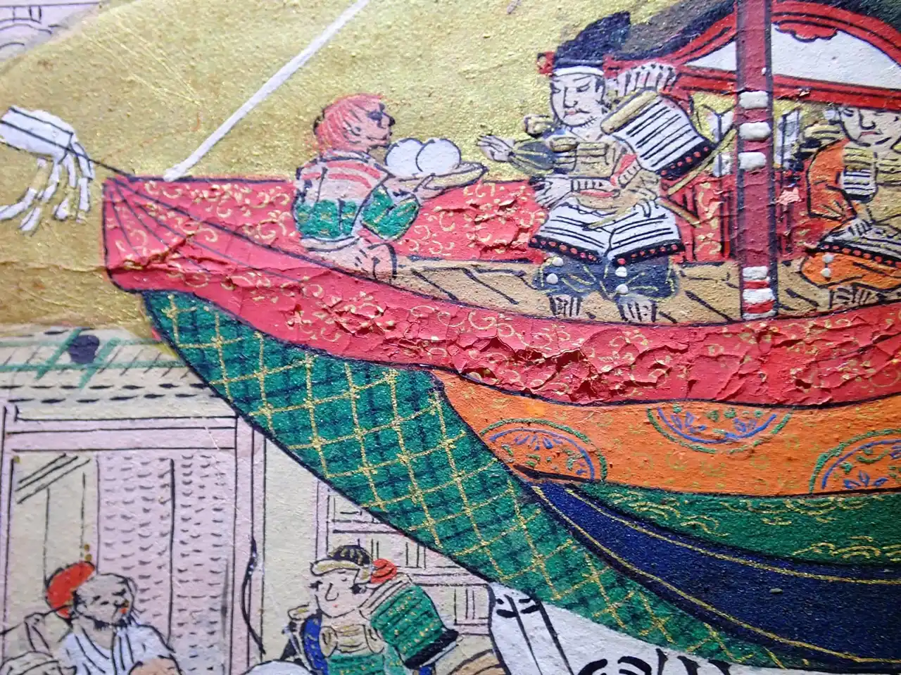 屏風は平成11年・12年に大規模な修理を行いましたが、それから25年以上が経過し、経年により絵具層の剥離やひび割れが見られるようになったため、令和7年度に「ガバメントクラウドファンディング(R)」を活用した修理を行いました。 |