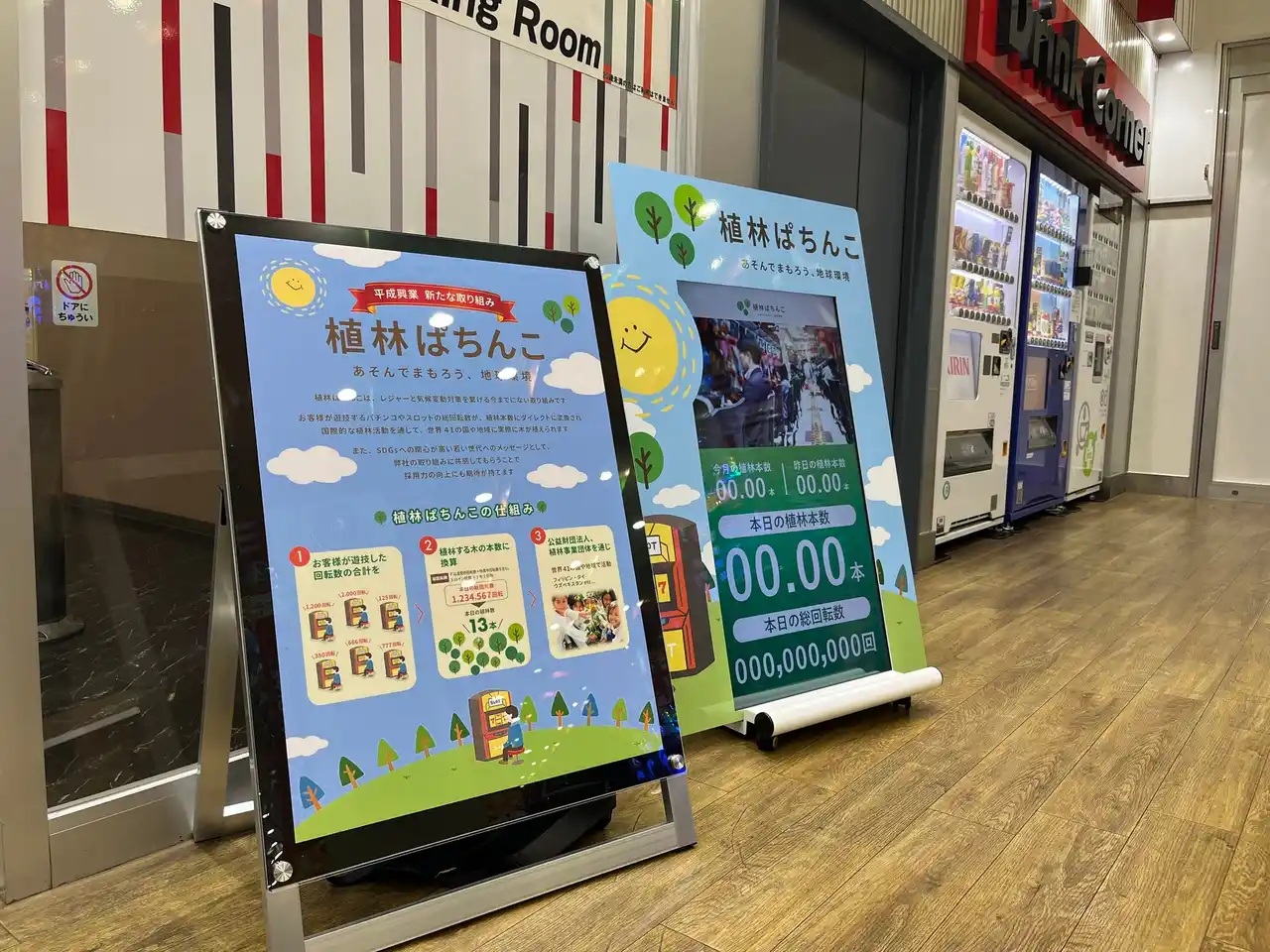 今回の導入により、株式会社平成興業が運営する「植林ぱちんこ」導入店舗は累計9店舗目となります。(※「植林ぱちんこ」全体の累計導入店舗数については別途ご確認ください) |