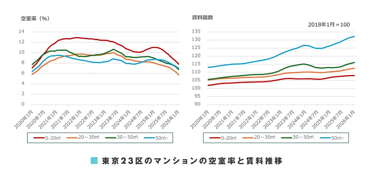 ■2026年1月の空室率と平均支払賃料および前年同月比 |
