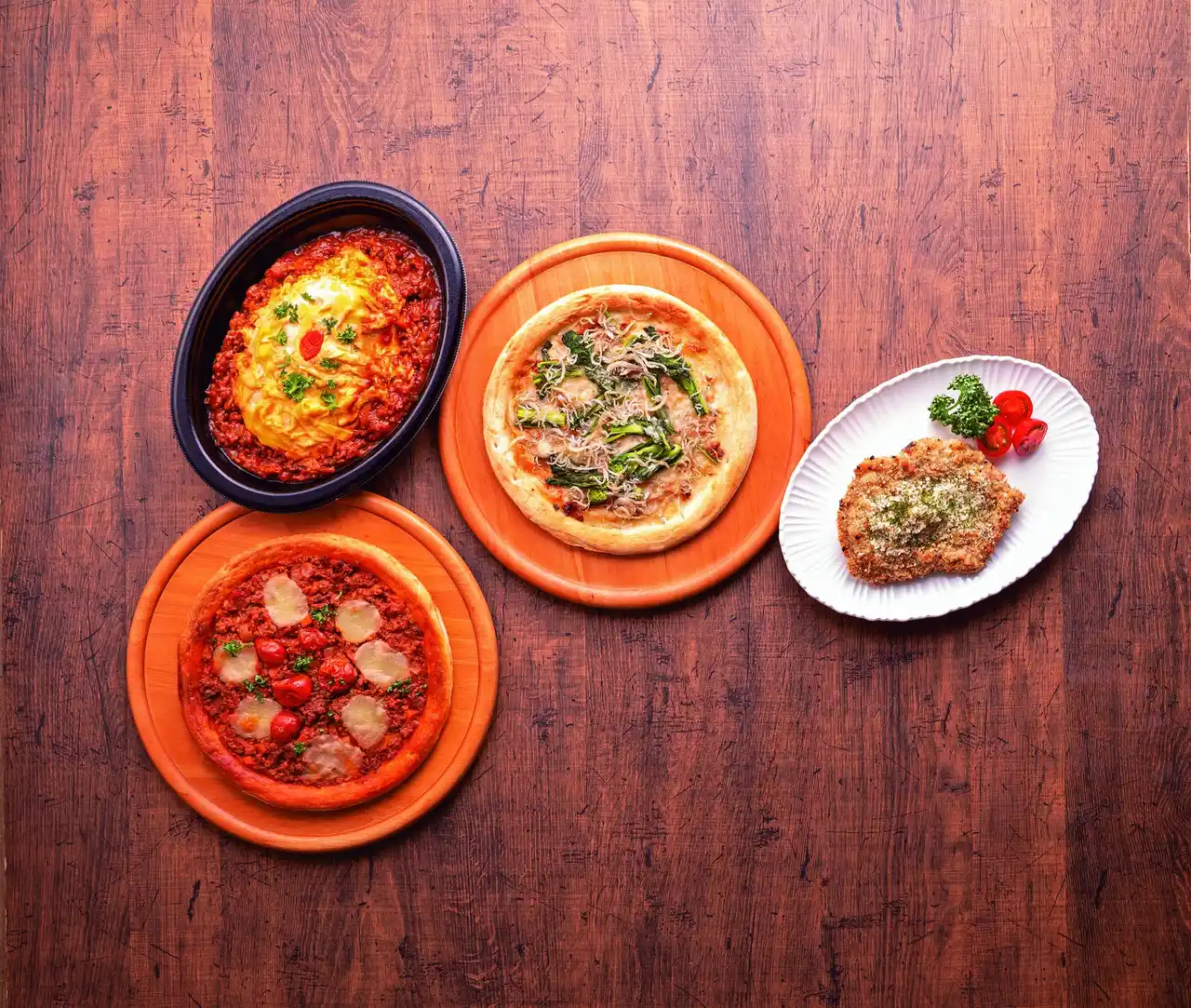 タリアータやカツレツなど肉料理を中心に人気のピザやオムライスも並びます。 |