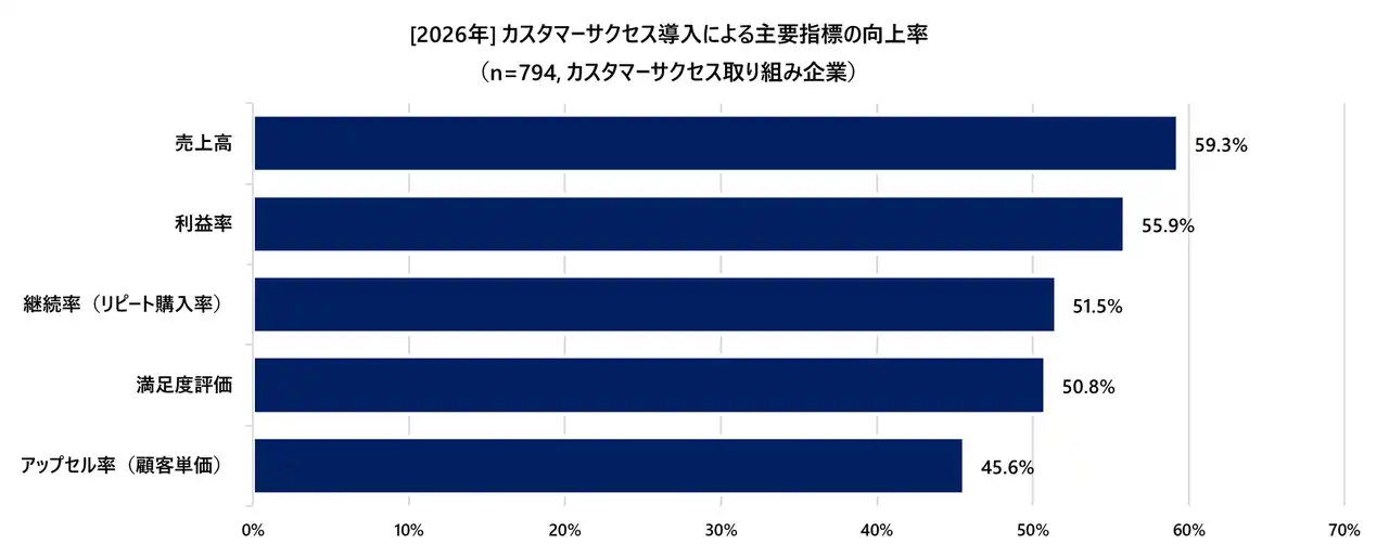図9:[2026年] カスタマーサクセス導入による主要指標の向上率(n=794, カスタマーサクセス取り組み企業) |
