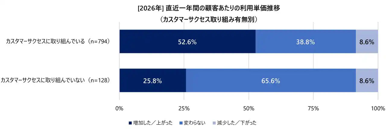図4:[2026年] 直近一年間の顧客あたりの利用単価推移(カスタマーサクセス取り組み有無別) |