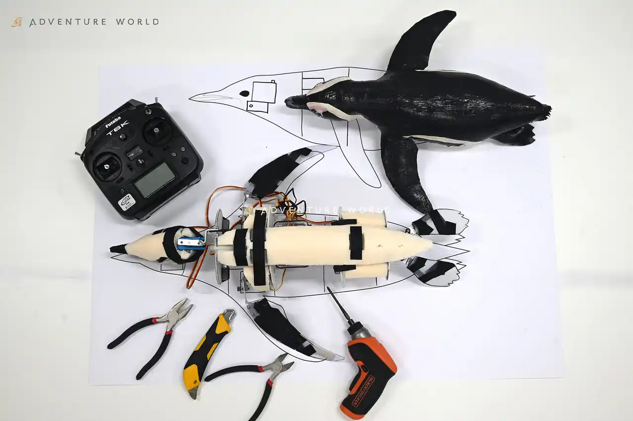 リモートコントロールによってペンギンさながらに水面をスイスイと泳ぐ、その生命力溢れる動きにご注目ください。全6種類のペンギンロボットの手づくりならではの愛らしい表情と、驚きの遊泳パフォーマンス を通じて、ペンギンの生態を楽しく学べるエンターテインメント空間をお届けします。 |