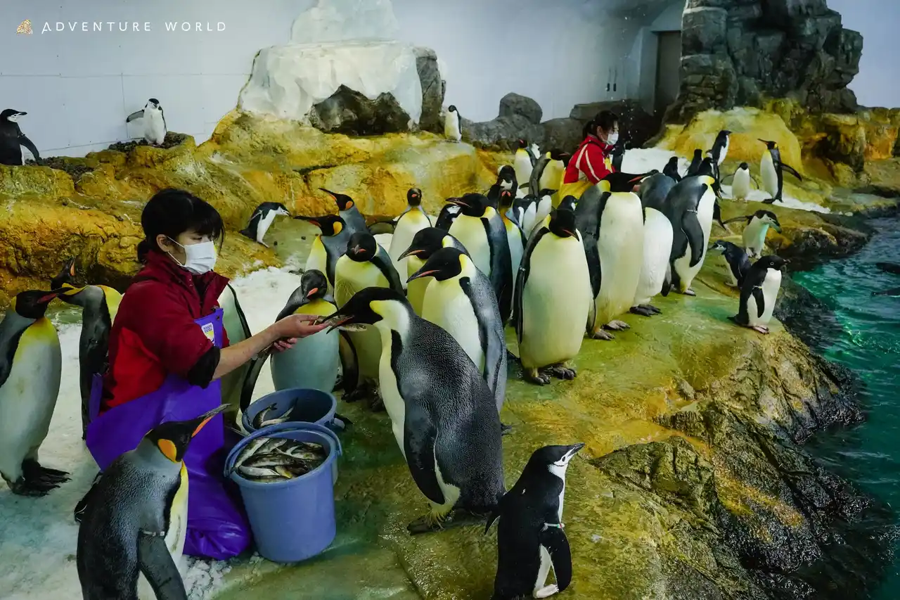 アドベンチャーワールドでは、1978年の開園時にフンボルトペンギンとキタイワトビペンギンの飼育を開始し、1990年から自然界で暮らすペンギンコロニー(繁殖群)を再現すべく、「ペンギンプロジェクト」として本格的に飼育・繁殖研究に力を注いできました。アデリーペンギン、ヒゲペンギン、ジェンツーペンギン、キングペンギンと繁殖実績を積み、1997年に世界最大のペンギン、エンペラーペンギンの繁殖研究を開始しました。 |