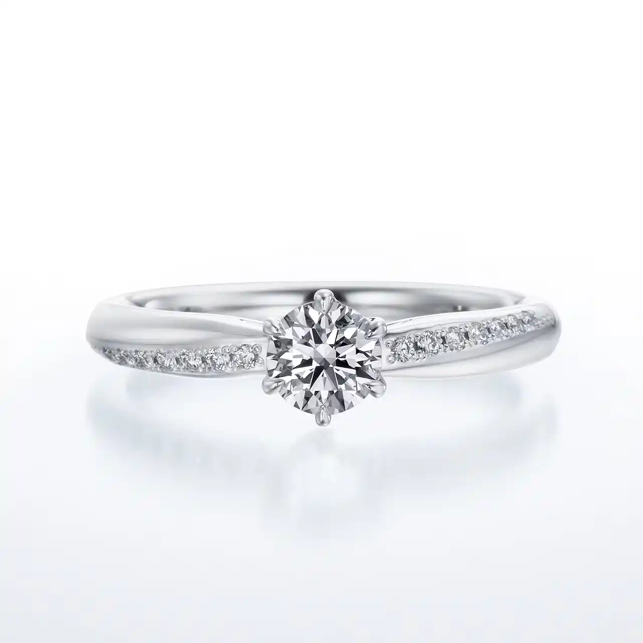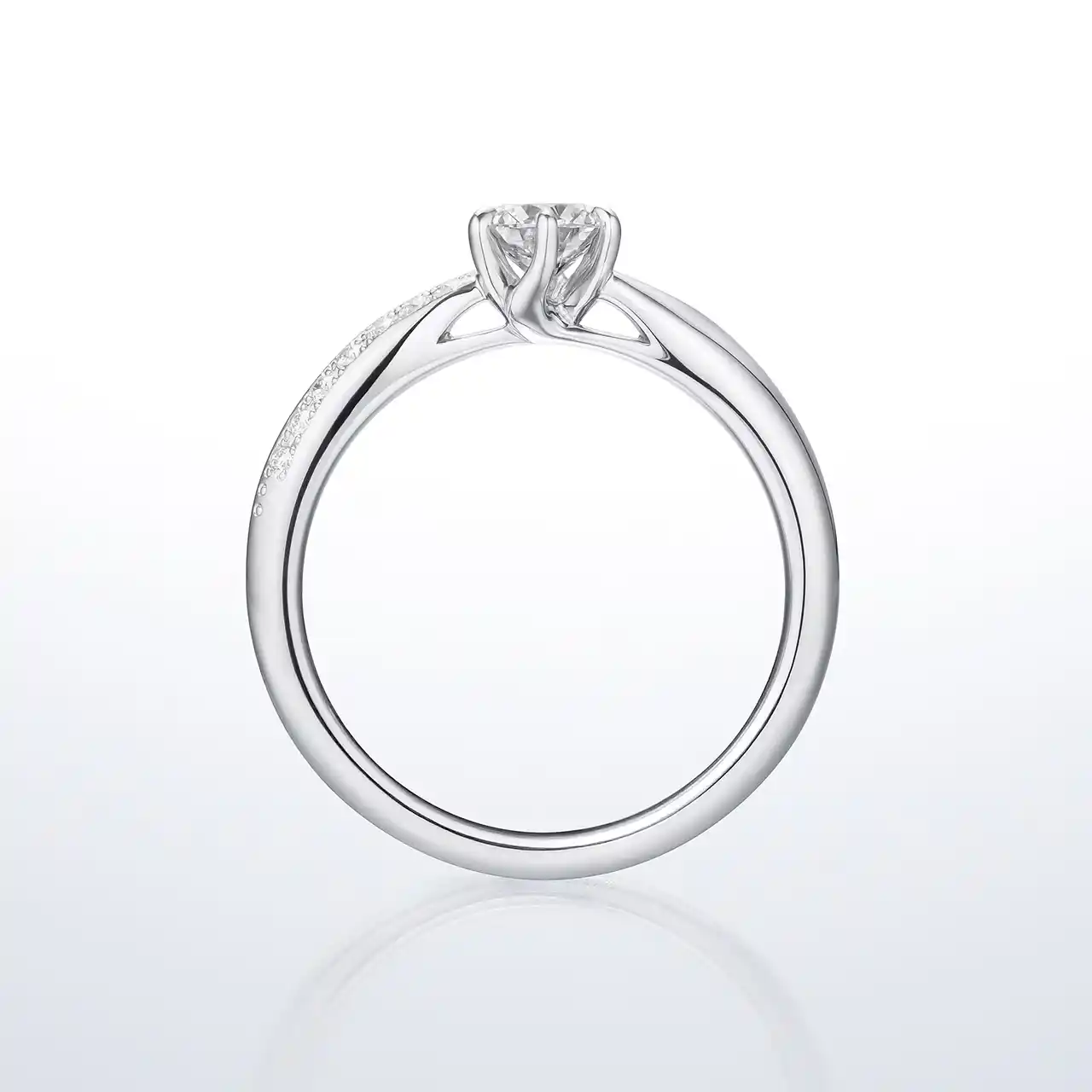 ふたりの出会いによって生まれた無限の輝きが永遠となり、未来へと果てしなく続いていく様子を表現しています。中心に向かって細くなるアームはセンターダイヤモンドを引き立て、ストレートでありながら緩やかなウェーブを描く有機的なメレダイヤモンドのラインは上品かつ自然な印象を与えます。 |