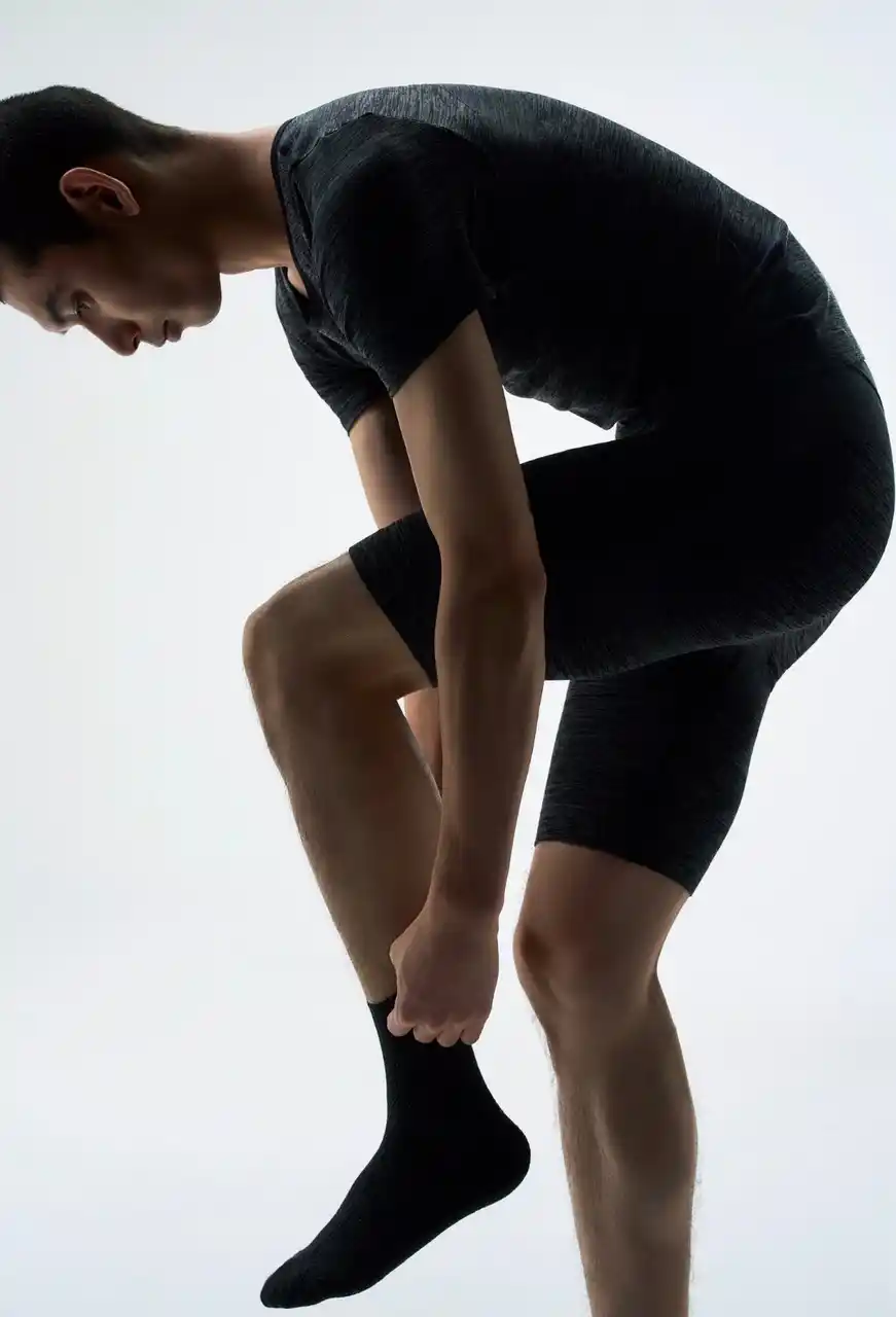 テーピング理論を応用し、筋肉の動きに沿って姿勢と動作をサポート。COVEROSS(R)の機能性繊維 |