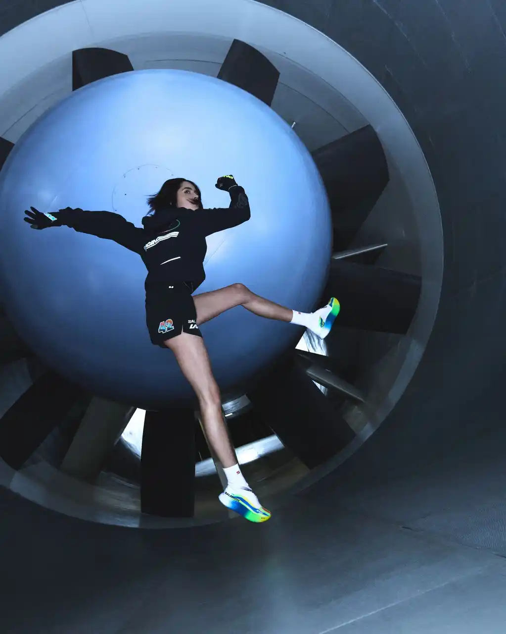 フットウェア以外にも、このコラボレーションはパフォーマンスとライフスタイルを繋ぐアパレルやアクセサリーのラインナップへと広がり、レーシングアパレル、ウォームアップキット、テクニカルアクセサリーが含まれます。 |