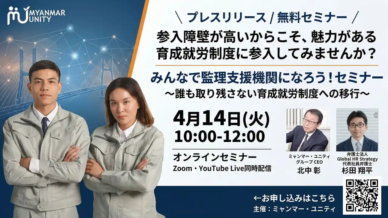 | ~「いつ、何をすべきか」を明確に。誰も取り残さない新制度への移行と、安定した事業基盤を築くための具体的準備~「ミャンマー・ユニティ」は、2026年4月14日(火)10時にセミナー開催! |