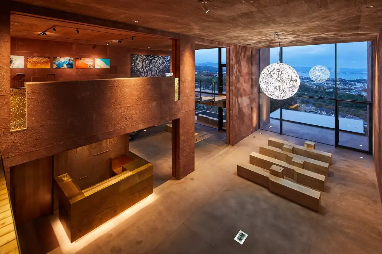 | 当館は市街地を見下ろす高台に位置し、夕暮れから夜にかけて刻一刻と表情を変える景色が広がります。やがて日が落ちると、街の灯りがきらめき始め、湯けむりがやわらかく立ちのぼる、別府ならではの幻想的な夜景が眼前に広がります。静寂と躍動が交差するその風景の中で奏でられる音楽は、まるで景色と呼応するかのように空間へ溶け込み、訪れる方の感性にやさしく寄り添います。 | ||||||||||||||