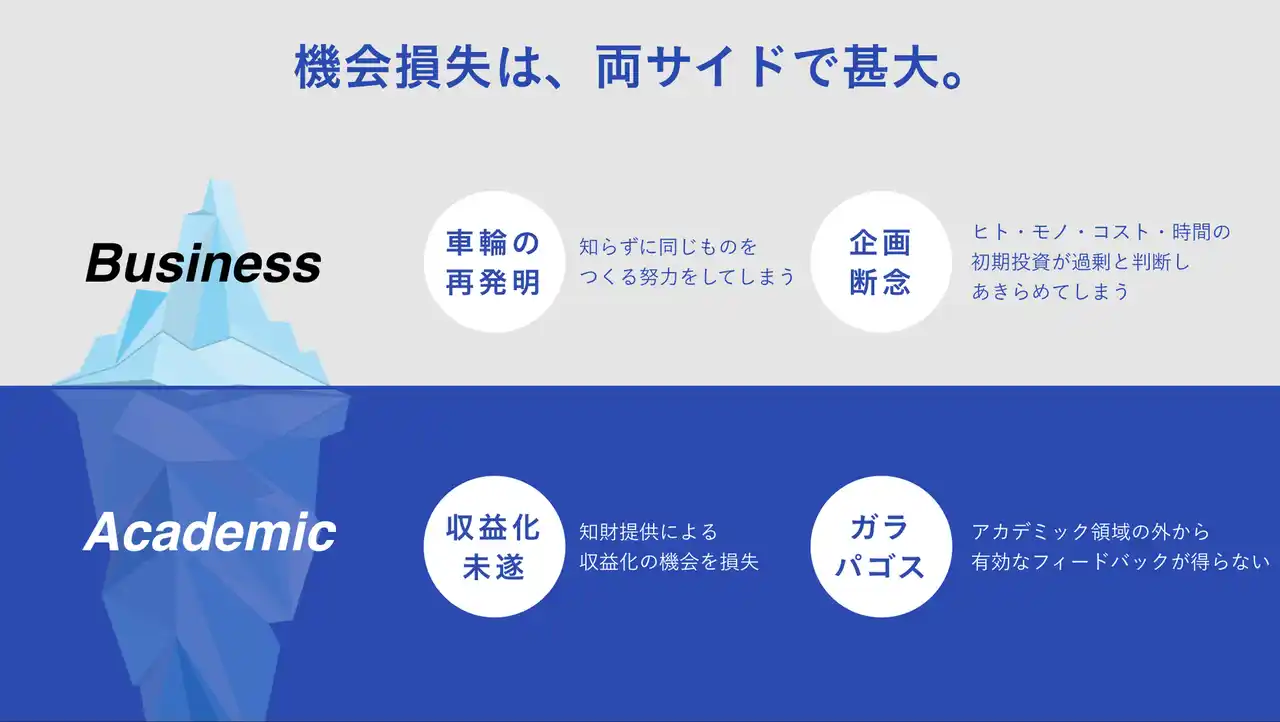 発明が届くべき人に届かない構造により、本来生まれるはずだった事業やコラボレーションが失われ続けています。 |