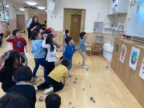 | 子供たちは鬼の的に向かって「おにはそと!」と元気よく豆まきを行い、それぞれのペースで挑戦する姿が見られました。 | |||||||||