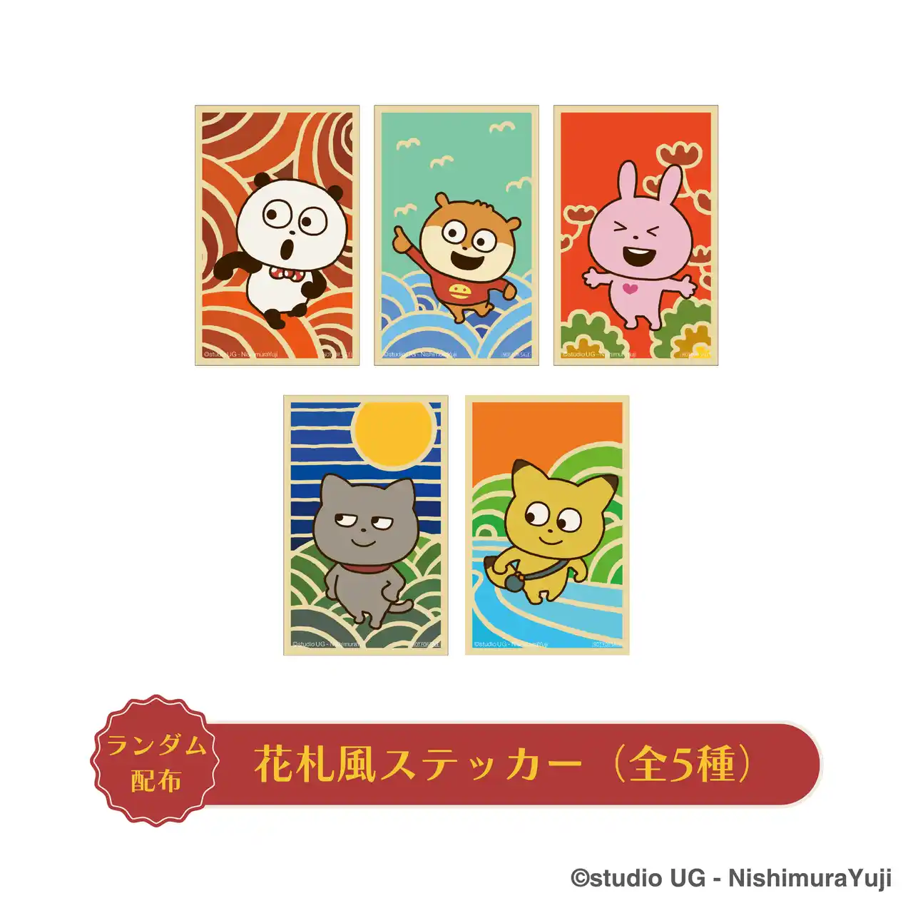 | コラボ商品のお会計2,500円(税込)ごとに、「花札風ステッカー(全5種)」をランダムで1枚プレゼントいたします。 | |||