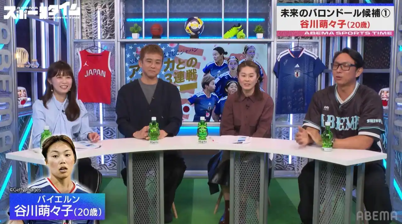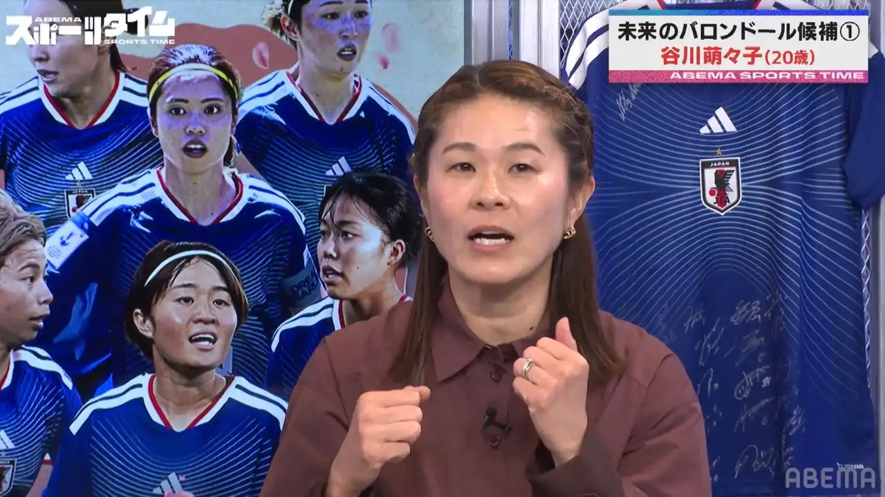 また谷川選手は、「バロンドールを獲るのがずっと夢」と自身の夢を明かしつつ、「澤穂希選手がW杯決勝でコーナーキックを決めたシーンはずっと心の中に残ってる。そういうチームが苦しい時、ゴールを決めて救える選手になりたい」と、澤氏への強い憧れも披露。澤氏は「貪欲に得点に絡むシーンも多く、非常に楽しみな選手の1人」と今後への期待を語りつつ、谷川選手からの熱い想いに「直接会って話したことはないので、どこかで対談できたら嬉しい」と笑顔でコメント。川崎氏も「ABEMAでやりましょう!」と応じ、スタジオは盛り上がりを見せました。 |