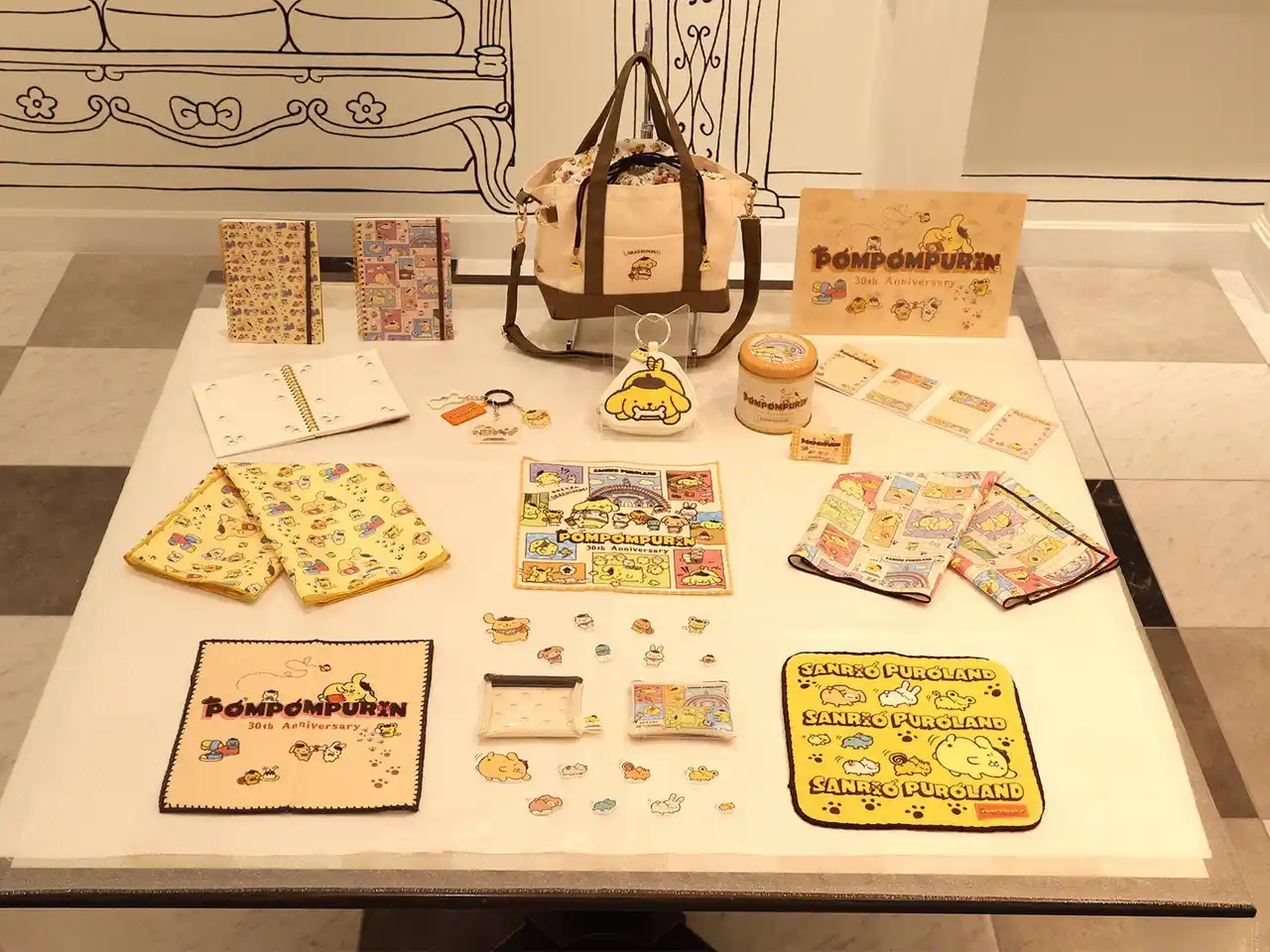 やわらかなタッチのイラストやあたたかみのあるカラーリングがかわいい 「POMPOMPURIN 30th Anniversary」期間限定グッズ |