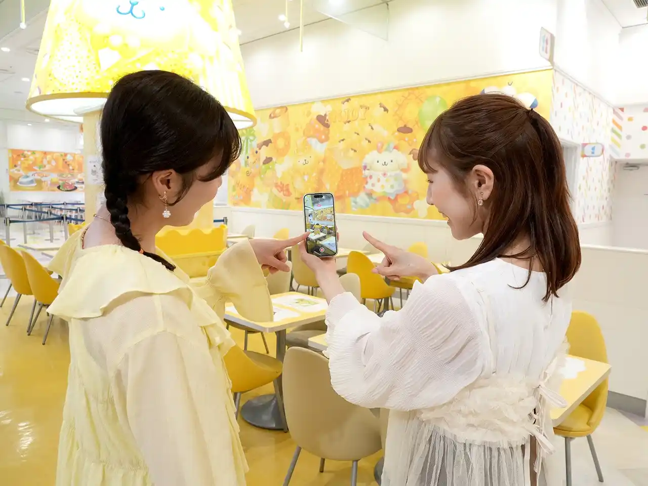 3F エントランスには、期間限定でポムポムプリンの大きなバルーンや、トレードマークである“おしり”のフォトスポットが登場し、ボタンを押すと何かが起こる楽しい仕掛けを前に、多くのゲストが写真撮影を楽しむ様子が見られました。さらに、新コスチュームをモチーフにした期間限定グッズや、3Dデジタルフィギュア「いつでもプリン」、ポムポムプリンの世界観を表現したボリューム満点の期間限定フードメニューも必見です。 |