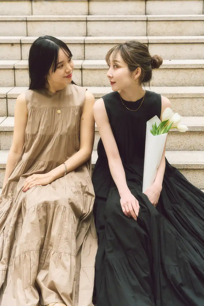 左:「ミューズのドレス/¥40,700(税込)/MARIHA」右:「ラストダンスのブラウス/¥31,900(税込)/MARIHA」 |