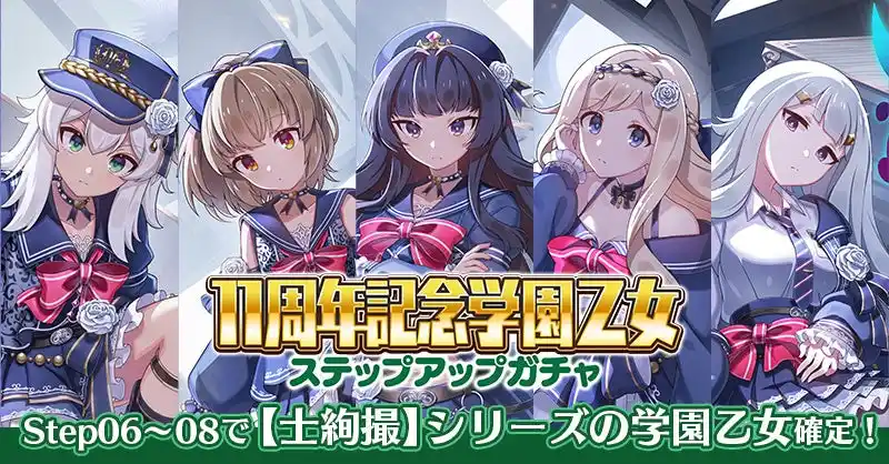 イベント開催にあわせて、11周年衣装を纏った【士絢撮】シリーズの学園乙女が登場するガチャの販売を開始いたしました。 |