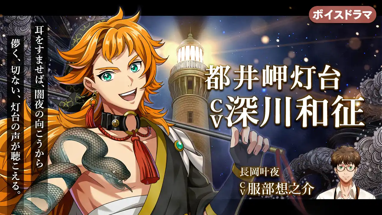 今回お届けする第63弾では、青二プロダクション所属の深川和征さんが都井岬灯台(宮崎県串間市)の守り人として登場。服部想之介さんが演じるルポライター・長岡叶夜との掛け合いを、2026年4月24日(金)にニコニコ生放送【燈夜会(とうやかい)】で初公開いたします。 |