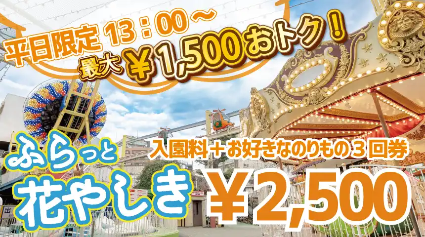 ◆平日お得なチケット『ふらっと花やしき』 |