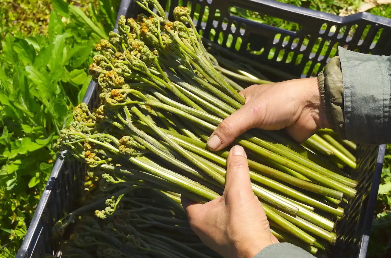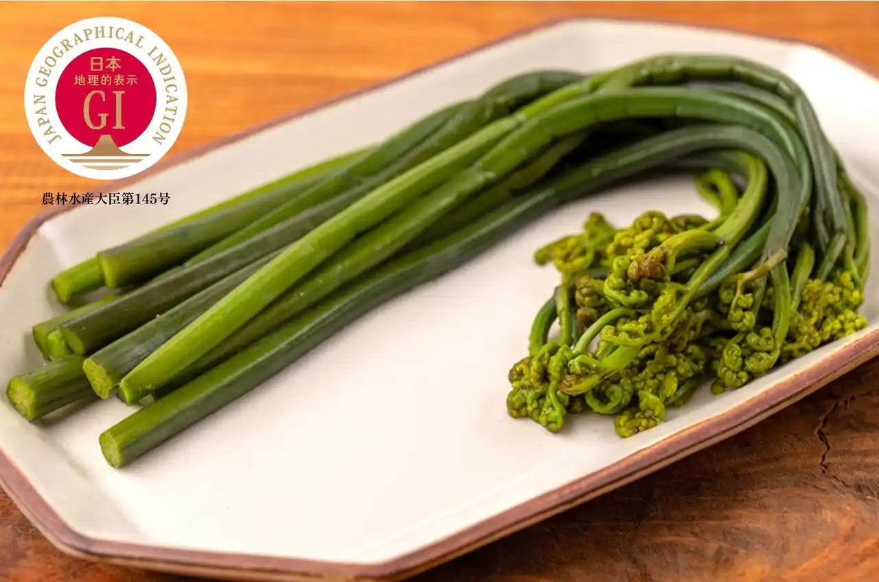 「西わらび」は、日本で初めて地理的表示(GI)に登録された山菜。 |