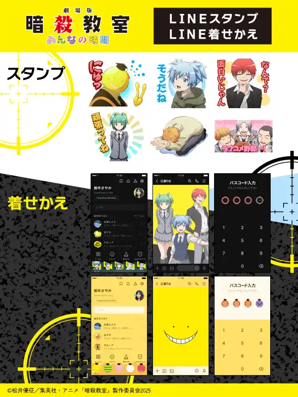 | LINE着せかえ『劇場版「暗殺教室」みんなの時間 殺せんせー』(150LINEコイン(スタンプショップ)/370 円(LINE STORE))) | |||