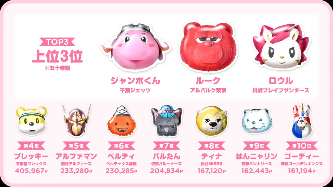 今後は上位3位マスコットによる決戦投票の戦いが待っており、決選投票を実施後に5月下旬開催予定の「B.LEAGUE AWARD SHOW 2025-26」で最終順位が発表されます。