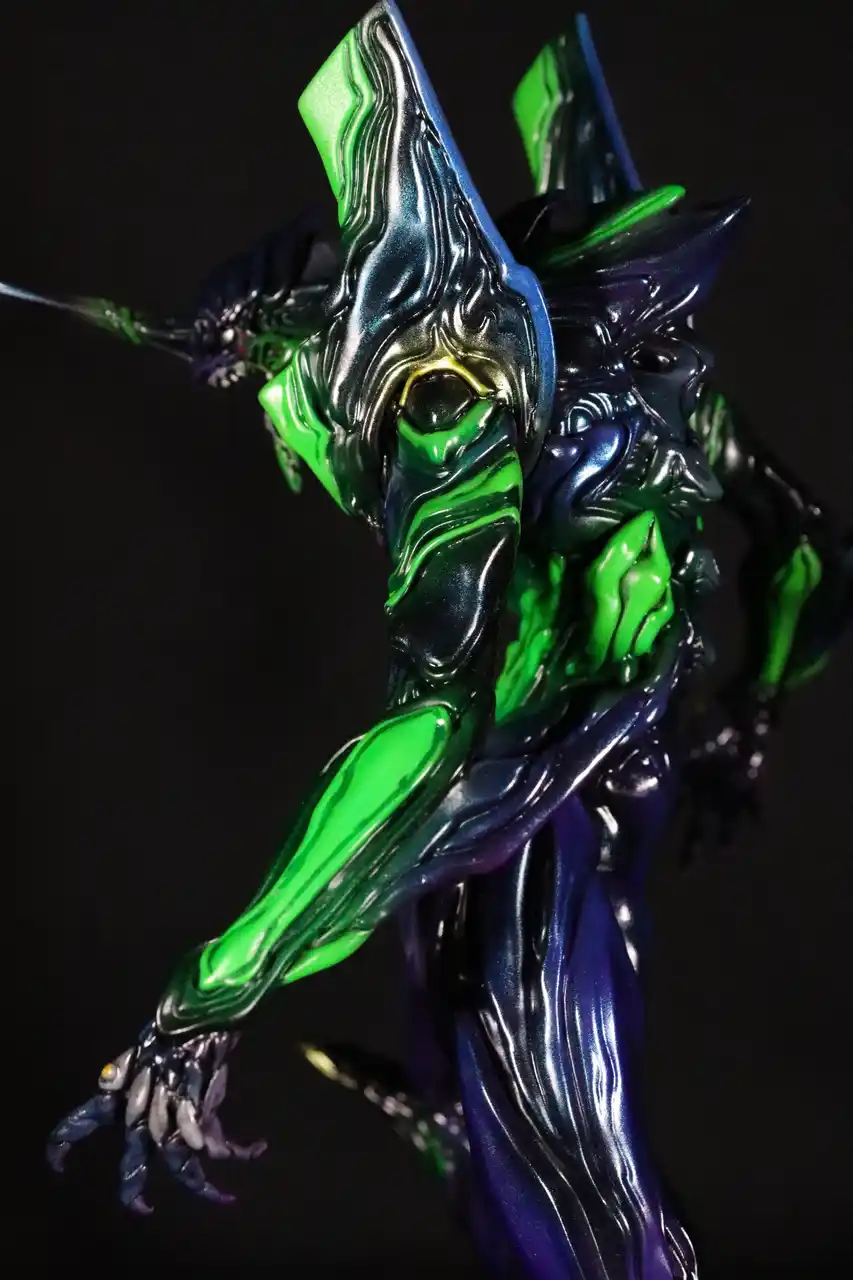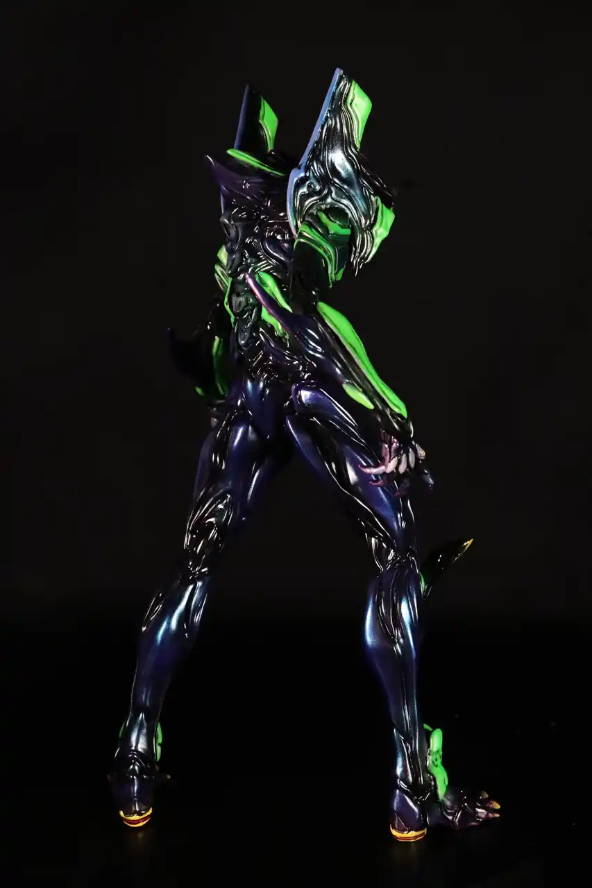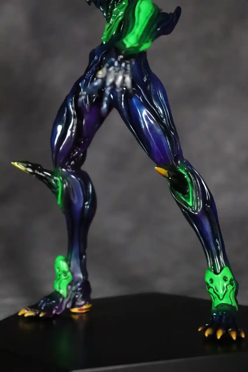 エヴァンゲリオ本来の体色を活かしながら、さらに蛍光塗料によるグリーンを加えた彩色が施されている事で、夜の闇の中で月明かりが反射しているような発光感をお楽しみ頂けます。 |