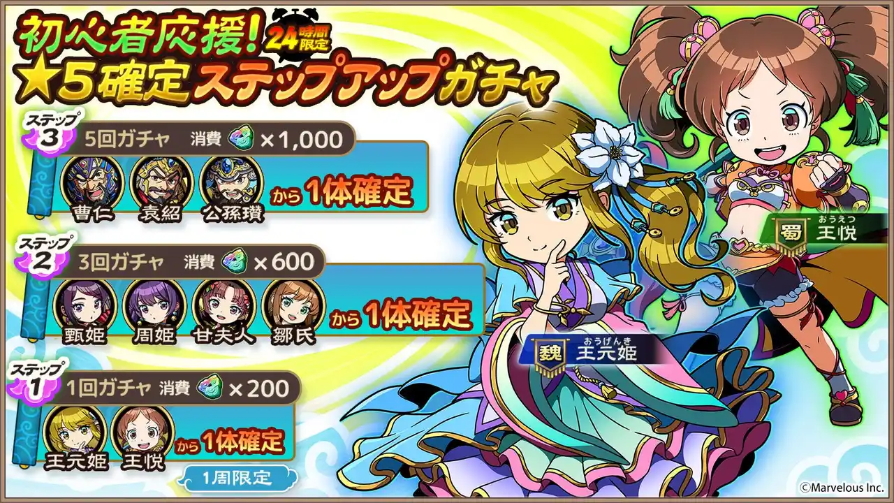 ◆「初心者応援!★5確定ステップアップガチャ」開催! |