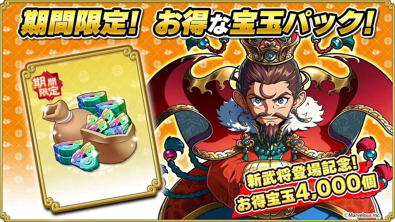 新武将登場記念!お得宝玉 4,000個 |