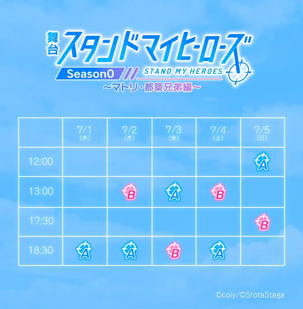 2026年7月に公演予定の舞台『スタンドマイヒーローズ』Season0~マトリ・都築兄弟編~のキービジュアル、チケット販売スケジュール、 |