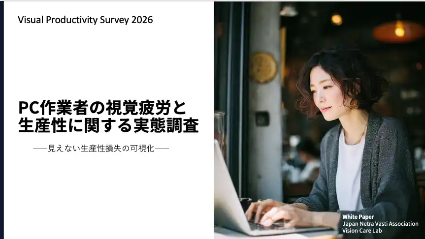 | Vision Care Labは、デジタル業務環境における視覚負荷に着目し、「視覚疲労がもたらす生産性への影響」を体系的に整理したホワイトペーパーを公開しました。 |