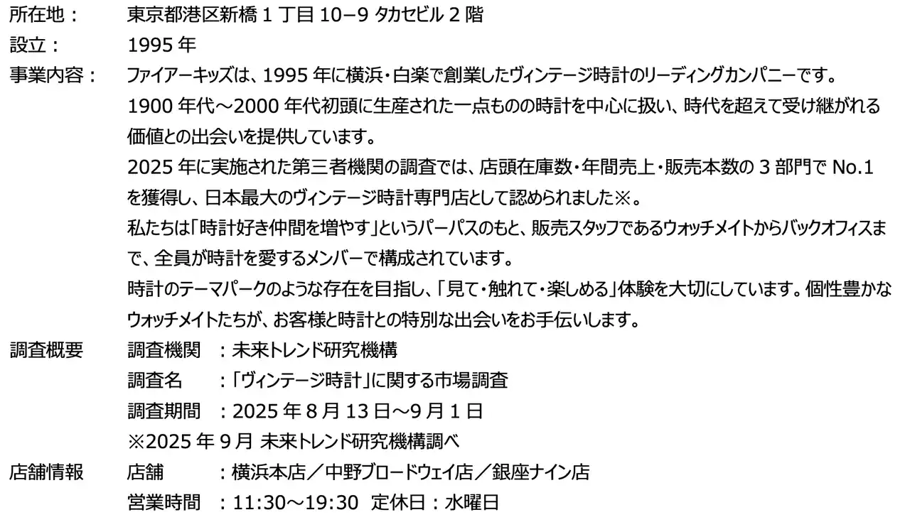 琉球アスティーダスポーツ株式会社(所在地:沖縄県中頭郡中城村、代表取締役会長 兼 社長:早川周作)は、1995年創業のヴィンテージ時計専門店を運営する株式会社ファイアーキッズ(本社:東京都港区、以下「ファイアーキッズ」)と、2026-27シーズンにおけるオフィシャルTOPスポンサー契約を締結いたしましたので、お知らせいたします。 |