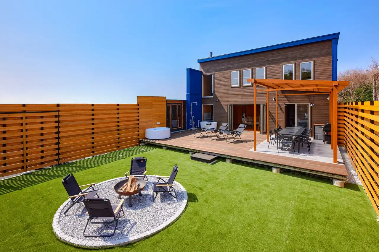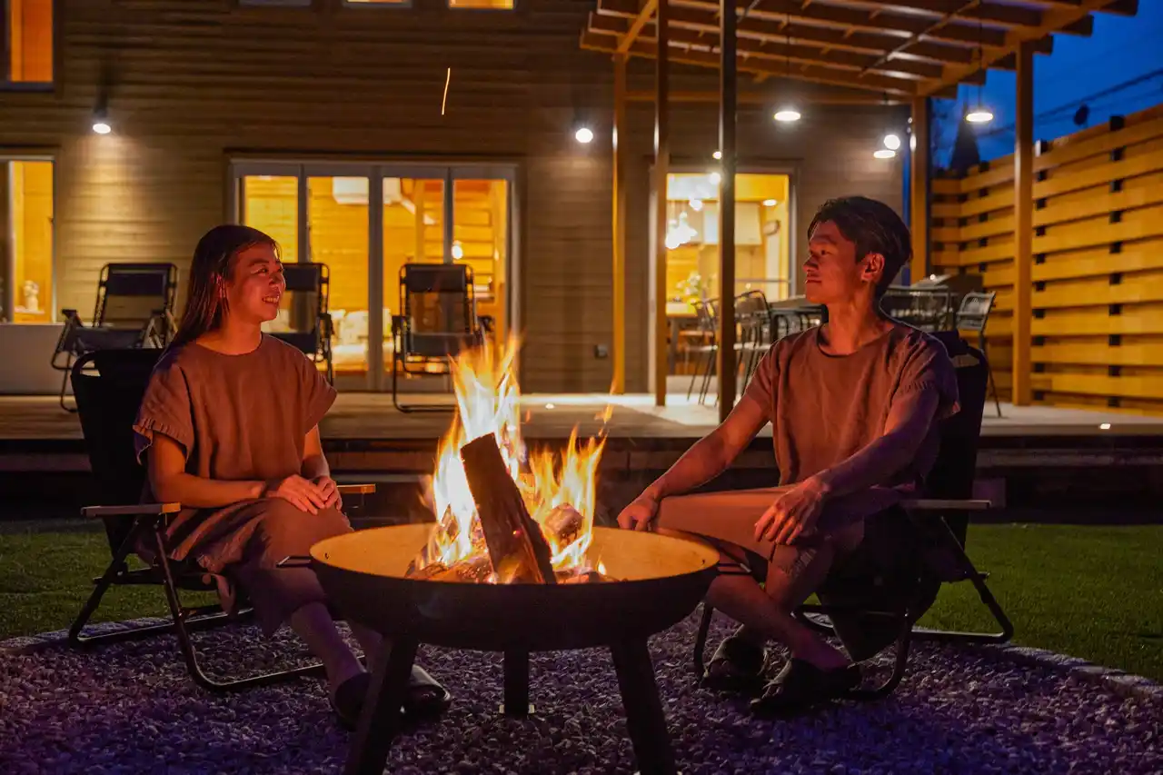中庭で楽しむ焚き火と外気浴 |