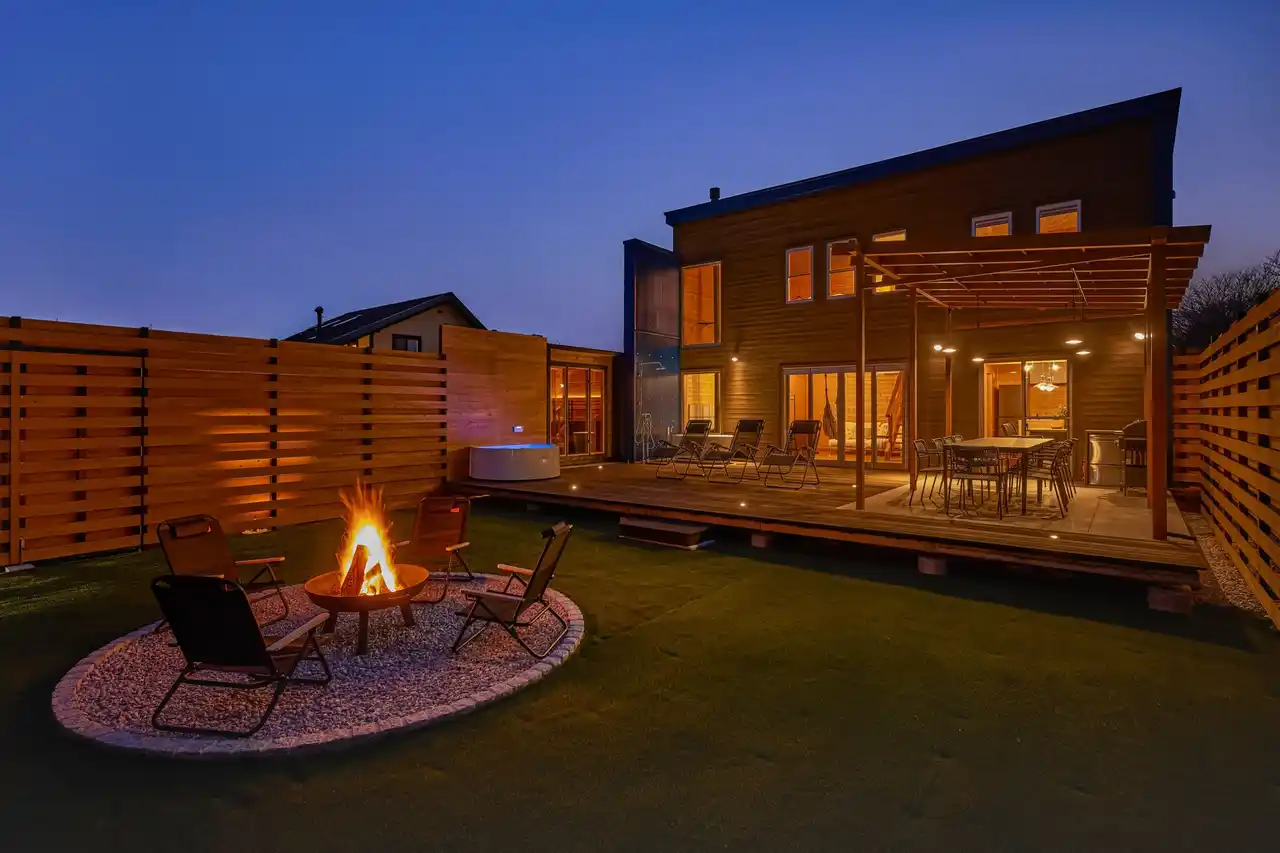 屋外では焚き火を楽しむことができ、サウナ後の外気浴とあわせて、風を感じながらゆったりとした時間を過ごせます。日中の開放感とは異なる、落ち着いた夜の時間もこの棟ならではの魅力です。 |