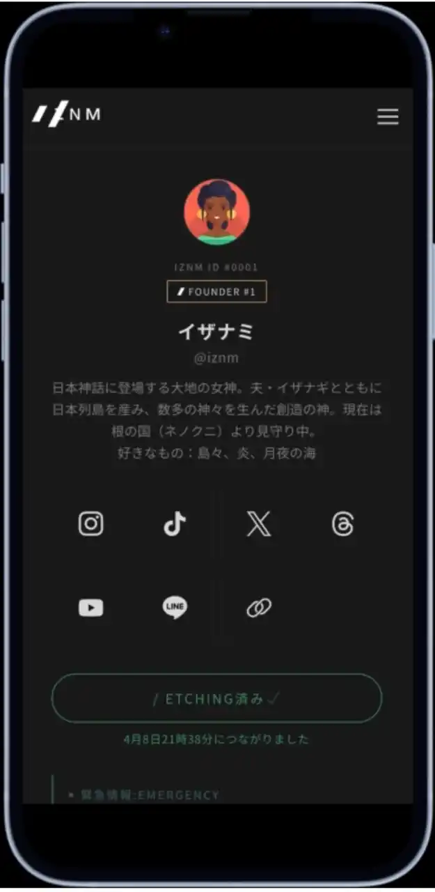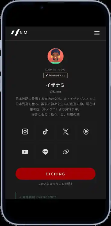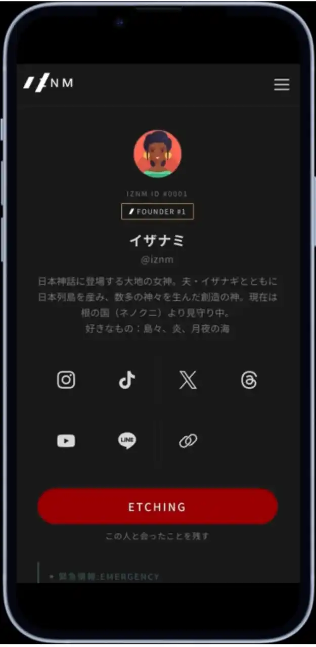 | プロフィール共有、ETCHINGによる会った記録、緊急情報アクセスをひとつに。茅ヶ崎発のライフスタイルIDサービス「IZNM(イザナミ)」が新プロダクトをリリース |
