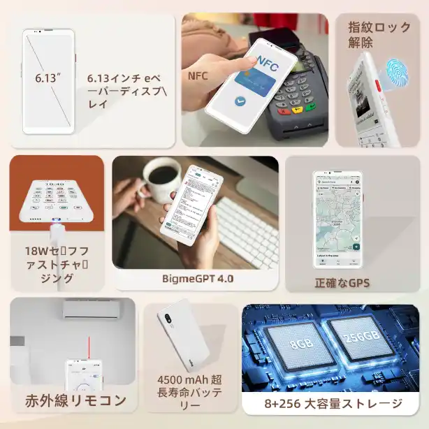モバイル:HiBreak Plusに加え、市場唯一の5GカラーE-Inkスマホ「HiBreak Pro」はSNS・決済・ナビも可能。 |