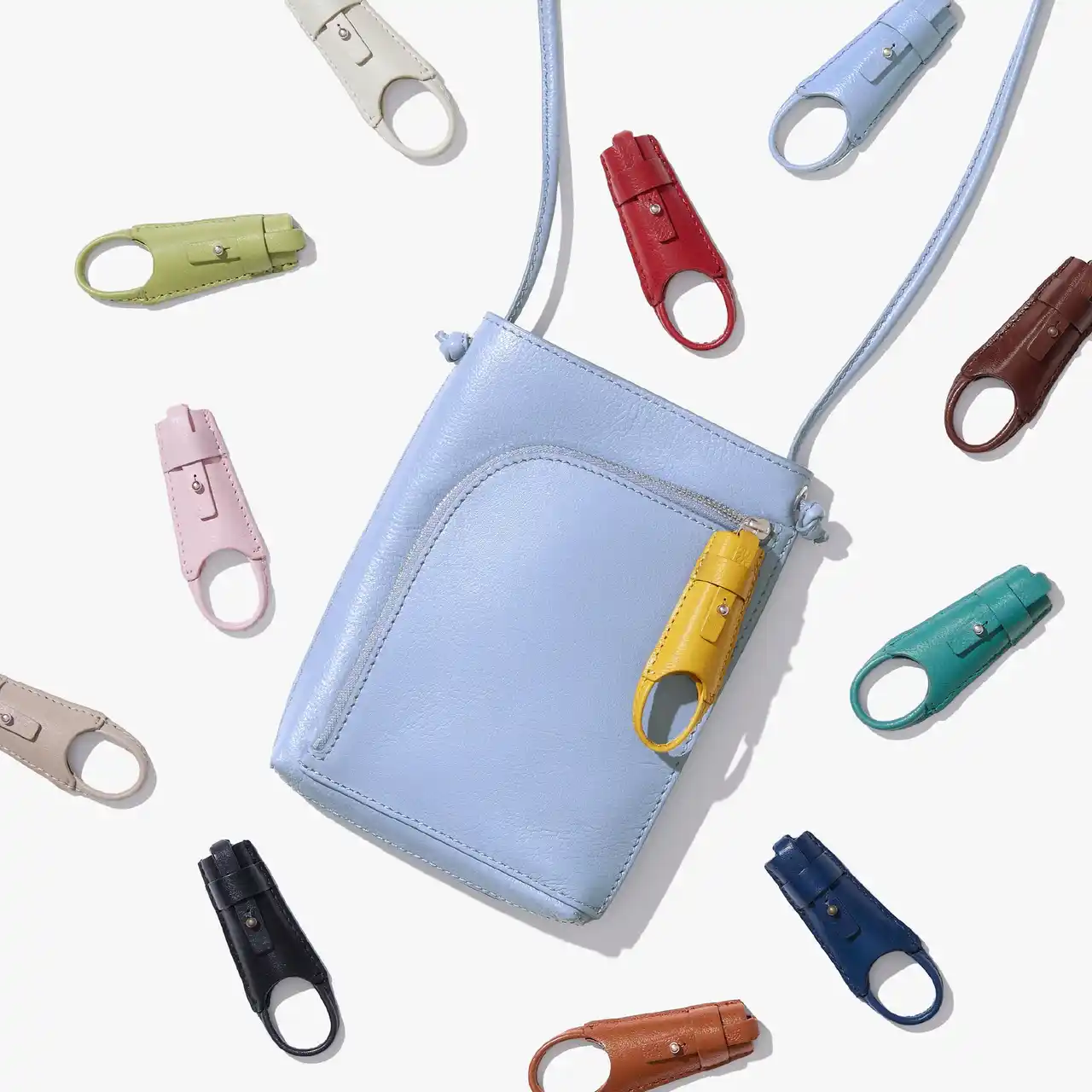 「Zipzip(TM) Shoulder」は、自分好みの色を組み合わせてカスタマイズできる「Zipzip(TM)」の魅力を最大化するために開発されました。バッグ本体(9色)と、別売りの「Zipzip(TM)」(12色)を組み合わせることで、全108通りのバリエーションが実現します。 |