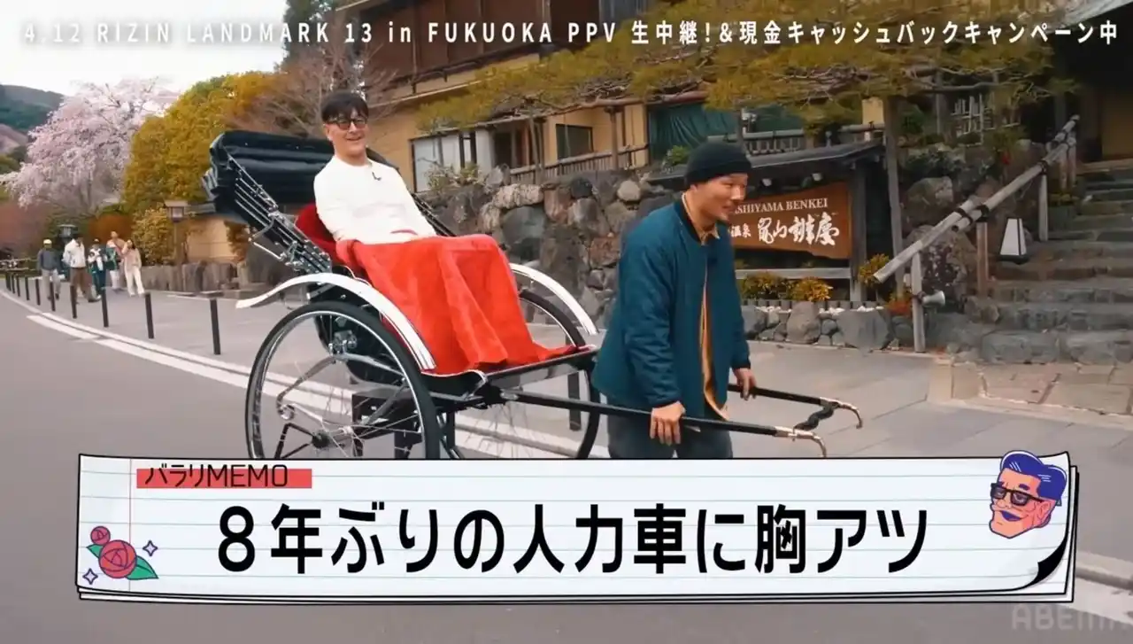 嵐山でかつて人力車を引いていたという福田選手が、「どうせやるなら強くなれそうな仕事を選んでいた」「どのファイターよりも走った距離は負けないと思う」という理由で車夫になった過去を明かします。また、番組内では久しぶりに人力車を引く福田選手の様子や、榊原CEOが初めて人力車にチャレンジする場面も。 |