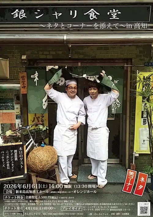 全国各地で完売御礼が続く大人気お笑いライブ「銀シャリ食堂」が、ついに高知へ上陸します。 |